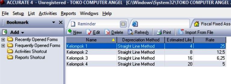 Kelompok 1: Masa manfaat 4 tahun, tarif penyusutan 25%