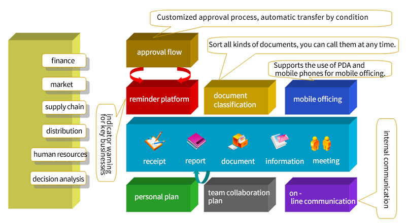 Office Automation (OA) System mendukung pekerjaan pada suatu perusahaan secara luas, biasanya digunakan untuk meningkatkan aliran pekerjaan dan komunikasi antar sesama pekerja, tidak peduli apakah pekerja tadi berada di satu lokasi yang sama ataupun tidak.