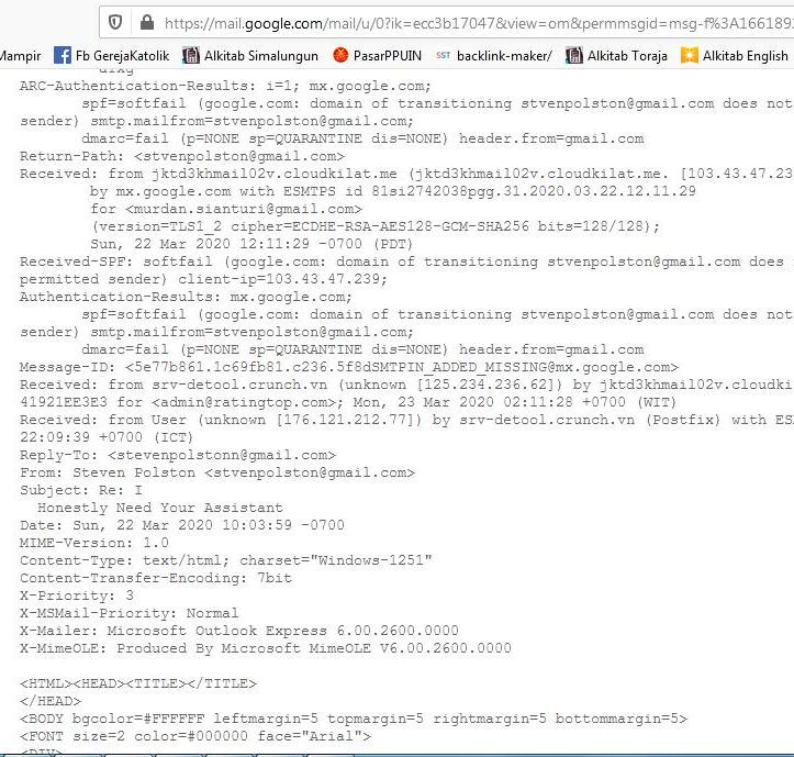 kemudian klik Show Original.Kemudian, silakan cari pada bagian Received. Nah jika